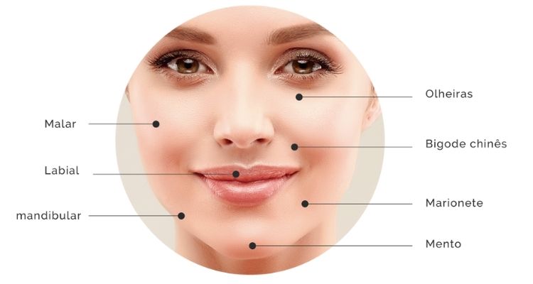 • Contornos faciais como no aumento da região malar (as "maçãs do rosto"), na volumização do queixo, na definição do contorno da mandíbula e dos ângulos mandibulares